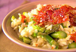 Last night, I made Champagne Risotto with asparagus and prosciutto chips. It is a Giada De Laurentiis recipe that was recommended to me by my friend Rebecca. She was right, it was a great excuse to open a bottle of champagne (we have plenty of bottles left over from our wedding). As far as risottos go, this recipe is quick and easy to make, as it serves just two people. The champagne adds just a hint of sweetness. With a side salad, this is the perfect date night dinner! However, you could easily scale the recipe for four or six people for a celebratory dinner party.